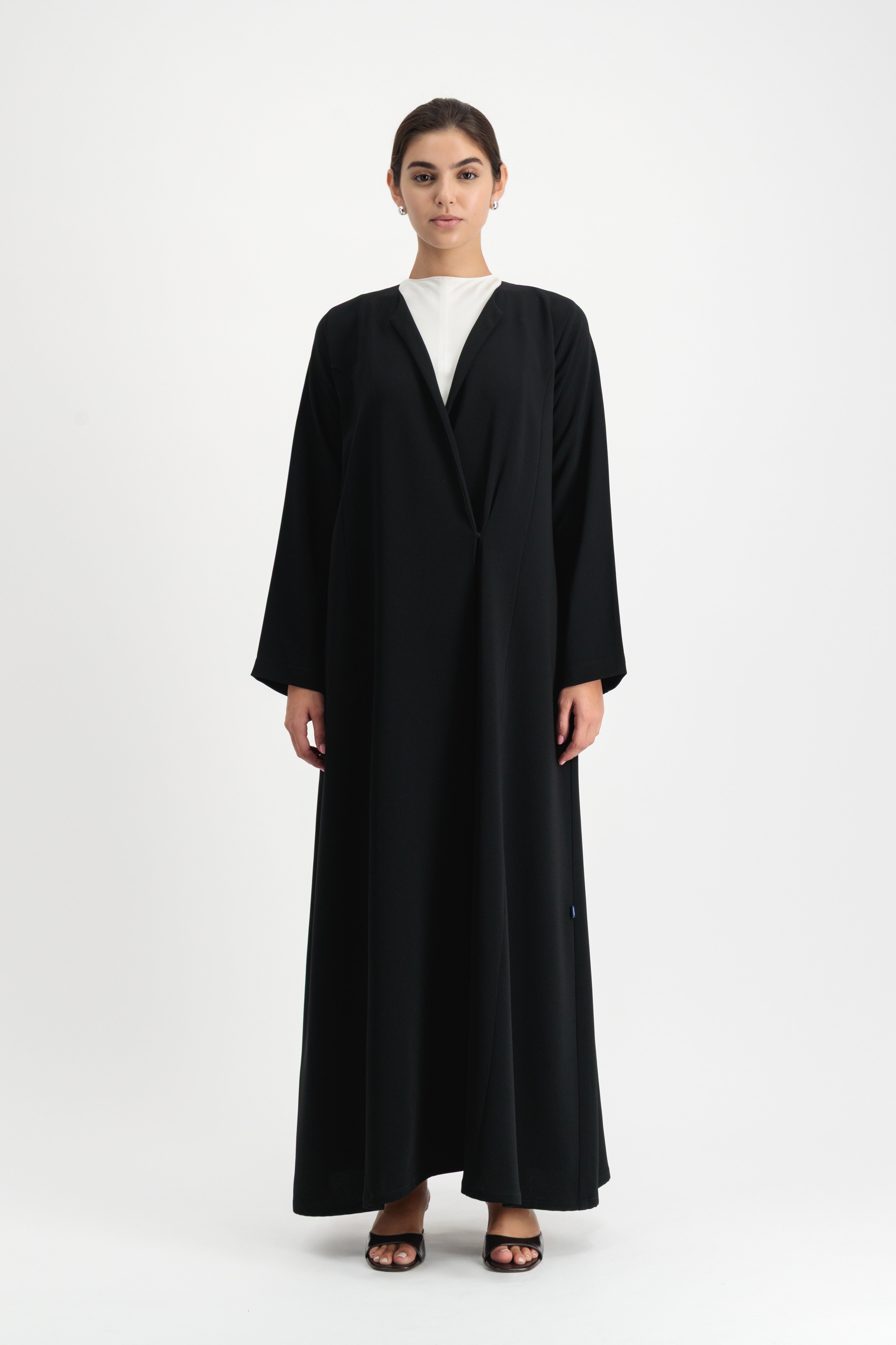 Designer Notes: The Wrap Blazer Abaya is now updated without the back slit.