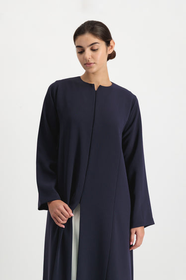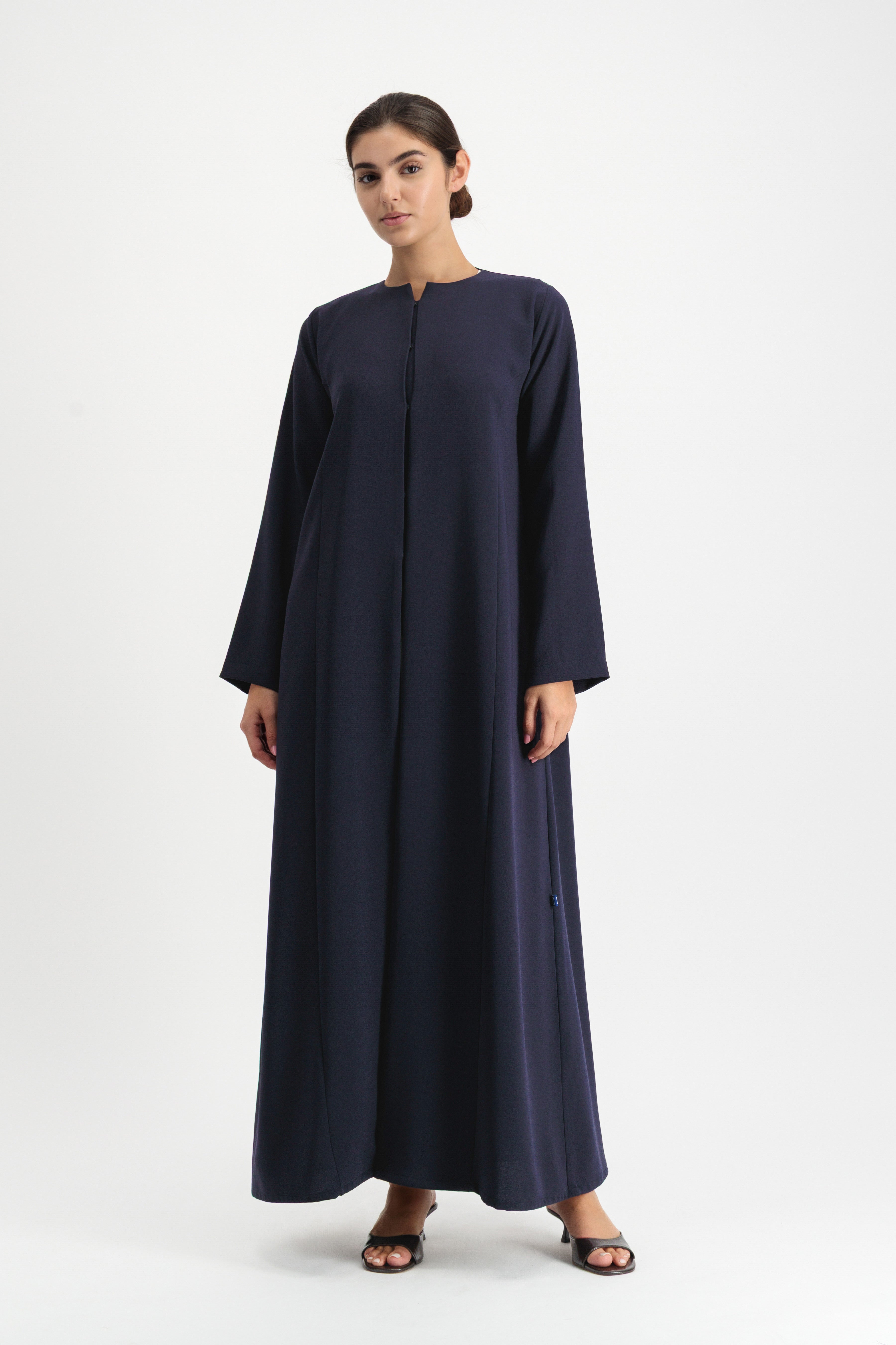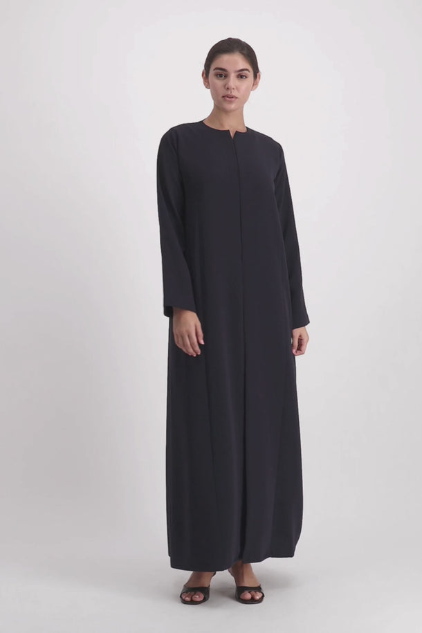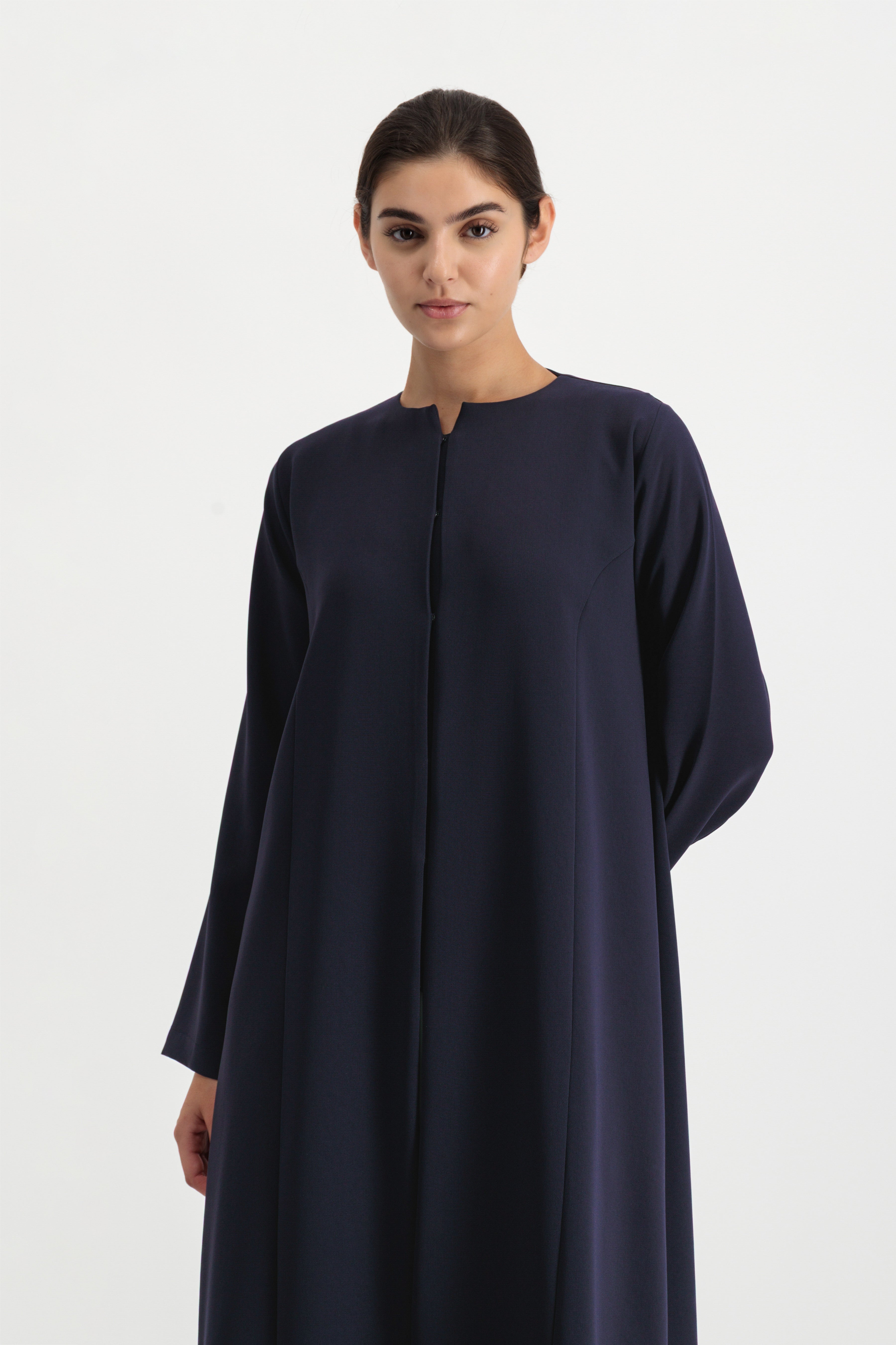 Made with Triacetate woven fabric, a premium, plant-based Japanese fabric. Buttoned top half. Standard cut. Back slit. Headscarf included. The model is 173 cm and wearing size 56 S.